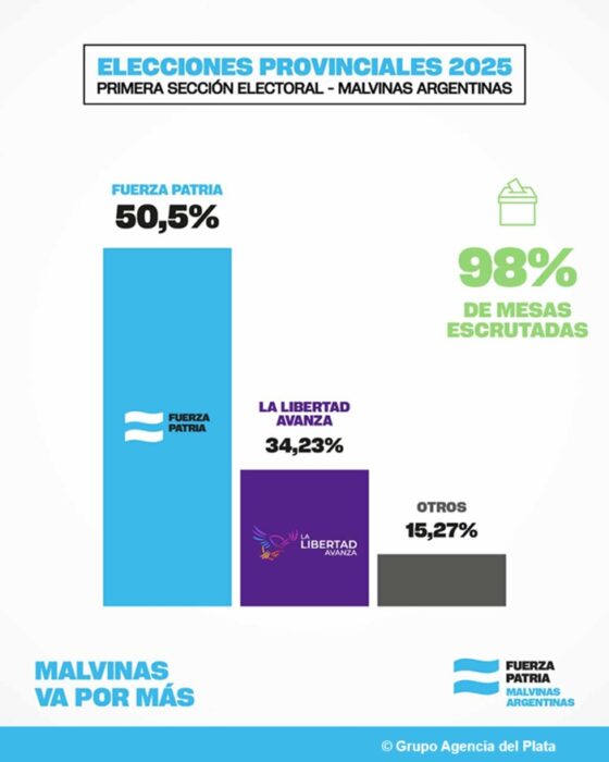 El resultado de octubre reafirma el mensaje que dejó el electorado malvinense en la elección de septiembre: el acompañamiento firme a una gestión que prioriza el trabajo, la administración transparente y el uso de los recursos públicos en beneficio directo de los vecinos.