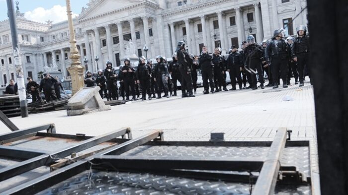 Las fuerzas de seguridad federales aplicaron el protocolo antipiquete y evitaron que las agrupaciones corten una de las arterias fundamentales para el tránsito que intenta cruzar la capital. Sin embargo, a pesar de que no hubo enfrentamientos, sí creció la tensión durante varios minutos y hasta lanzaron gas pimienta.