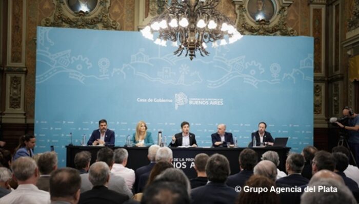 Fue en el Salón Dorado, junto a la vicegobernadora Verónica Magario; los ministros de Economía, Pablo López; de Gobierno, Carlos Bianco; y el presidente de la Cámara de Diputados bonaerense, Alexis Guerrera.