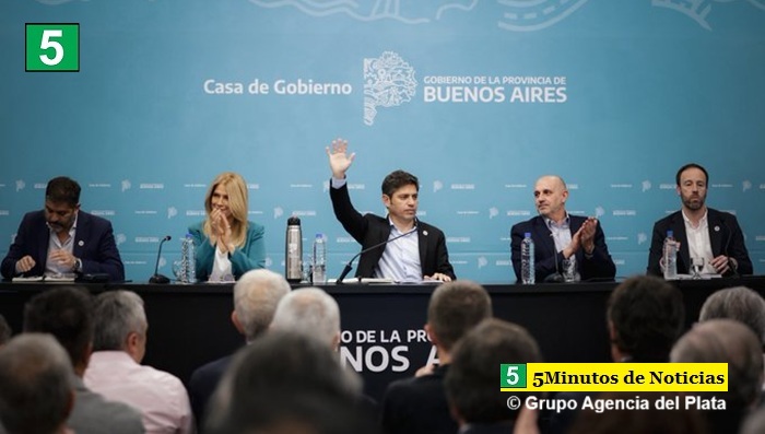 Fue en el Salón Dorado, junto a la vicegobernadora Verónica Magario; los ministros de Economía, Pablo López; de Gobierno, Carlos Bianco; y el presidente de la Cámara de Diputados bonaerense, Alexis Guerrera.