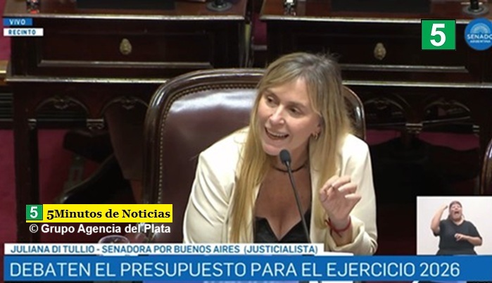 La senadora de Unión por la Patria afirmó que el presidente Milei “va a caer preso” una vez que concluya su presidencia. “El topo no solo vino a destruir el Estado desde adentro sino que vino a destruir el Estado Nación y eso es lo que está plasmado en el articulado de este presupuesto”, lanzó Juliana Di Tullio que subrayó “El superávit tiene que estar supeditado a mejorarle la calidad de vida a los argentinos y argentinas”.